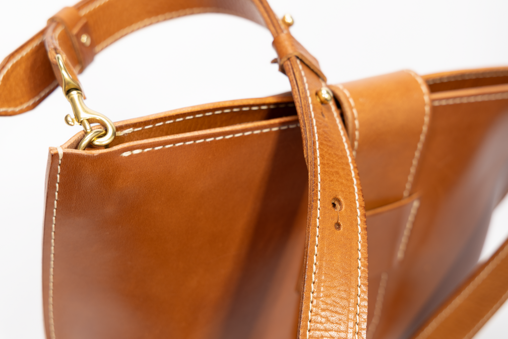 When exposed to sunlight, oils and water, veg tan leather will grow darker and over time develop a lovely dark patina. This patina is natural and is what gives this type of leather its coveted color.