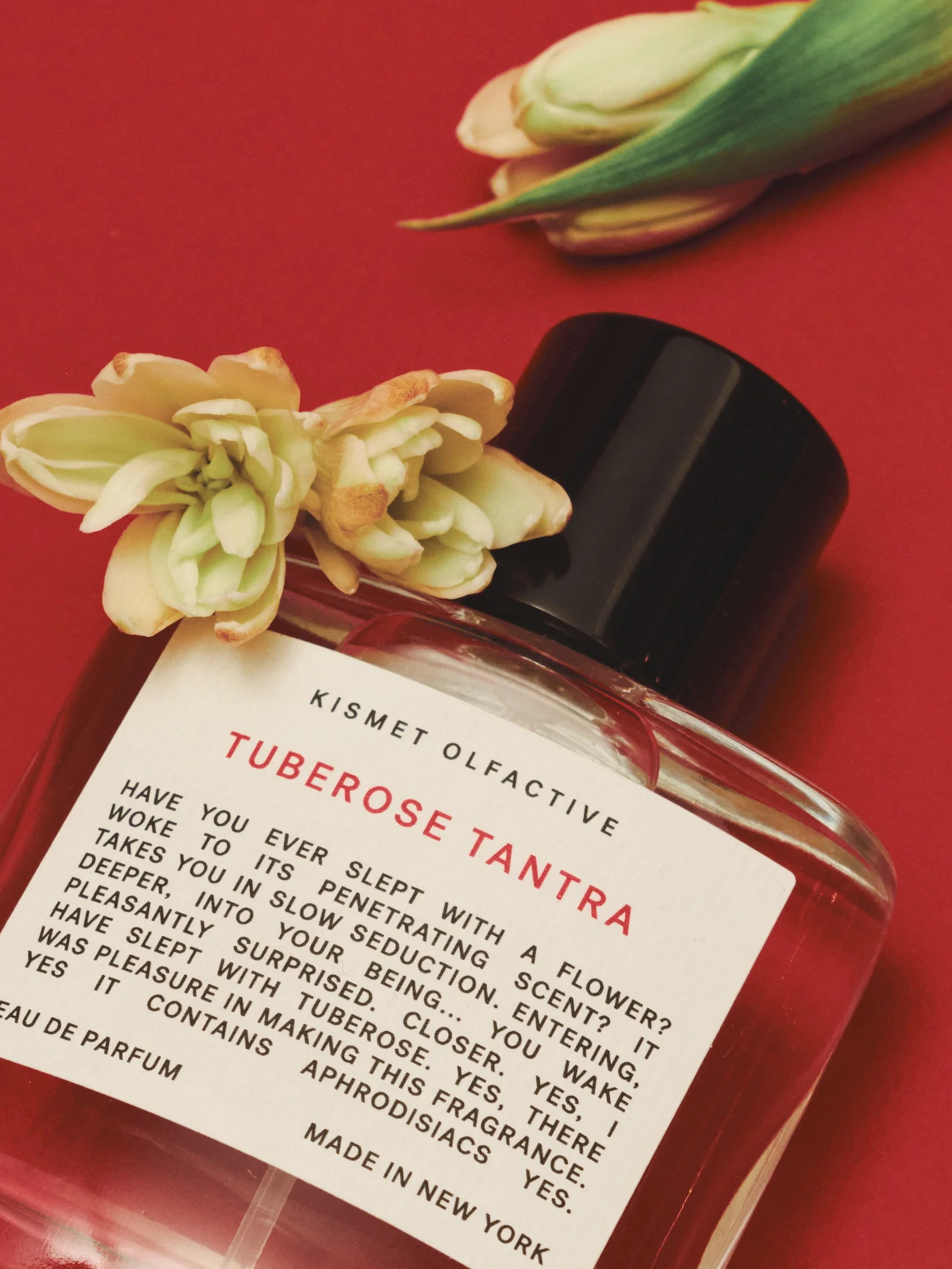 An erotic floral fragrance candle inspired by Eastern sex magic practices, Tuberose Tantra is energized by the ritual of building slowly rather than rushing to the climax. Infused with layers of ancient aphrodisiac oils, its base is composed of a strong bed of sandalwood, its heart contains a plentiful dose of narcotic tuberose, and its top notes burst with spicy ginger.