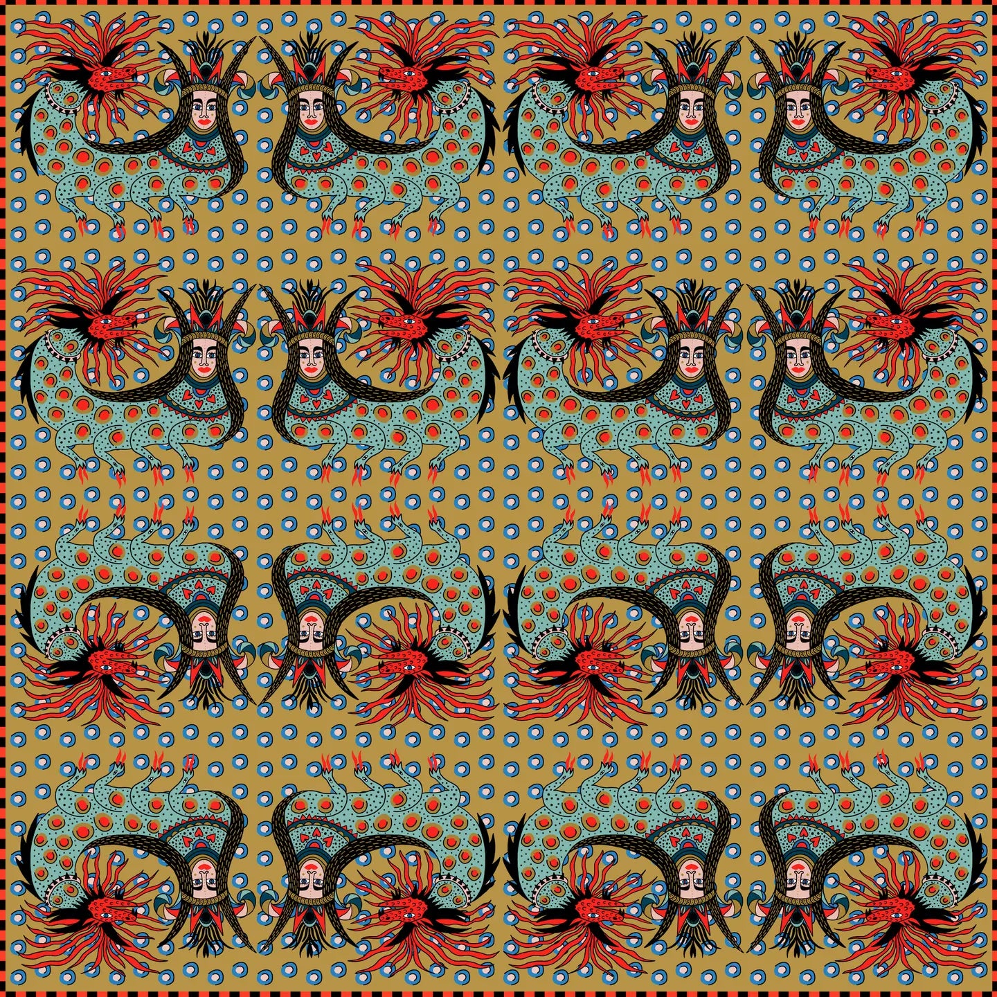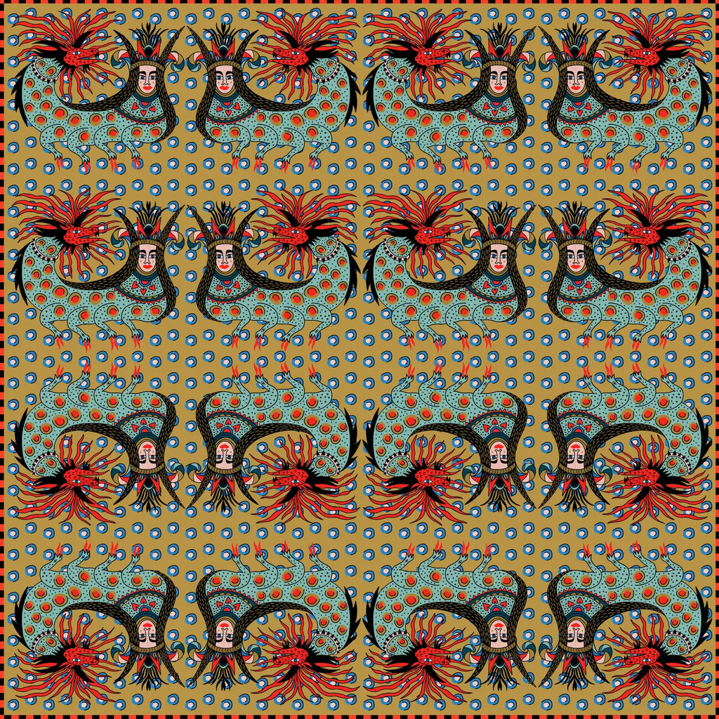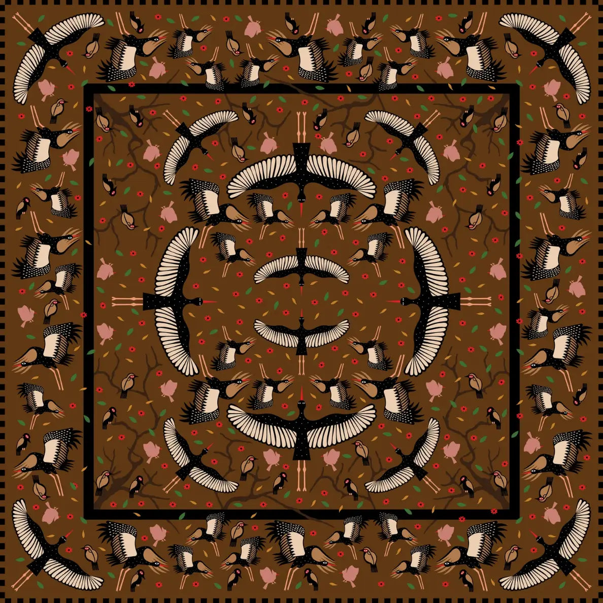 Lightweight, soft, airy, and drapes nicely. Premium quality 70% cotton 30% silk-blend season-less fabric. Transferred digitally and produced in a limited quantity. The scarves' edges are hand-rolled. Ecologically responsible textile.
