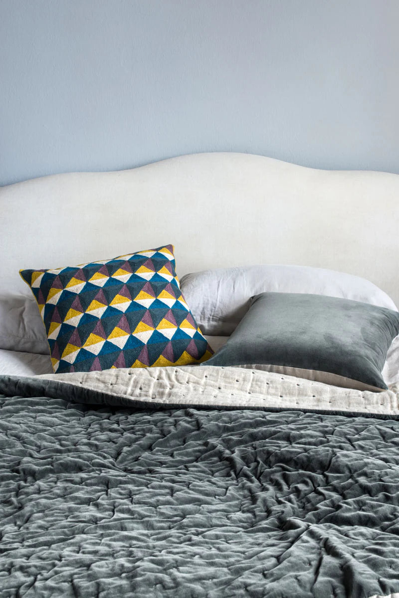 These beautiful soft velvet linen quilts let the quality of the materials speak and for themselves. Hand stitched quilting on a soft cotton velvet front is contrasted with an un-dyed 100% natural linen reverse. Filled with 100% cotton, giving the quilt a lovely weight and drape.