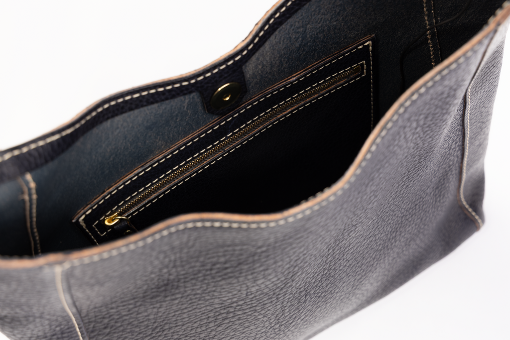 All our bags are made with American sourced fully vegetable tanned leather. When exposed to sunlight, oils and water, the leather will grow darker over time and develop a lovely dark patina. This patina is natural and is what gives this type of leather its coveted color.