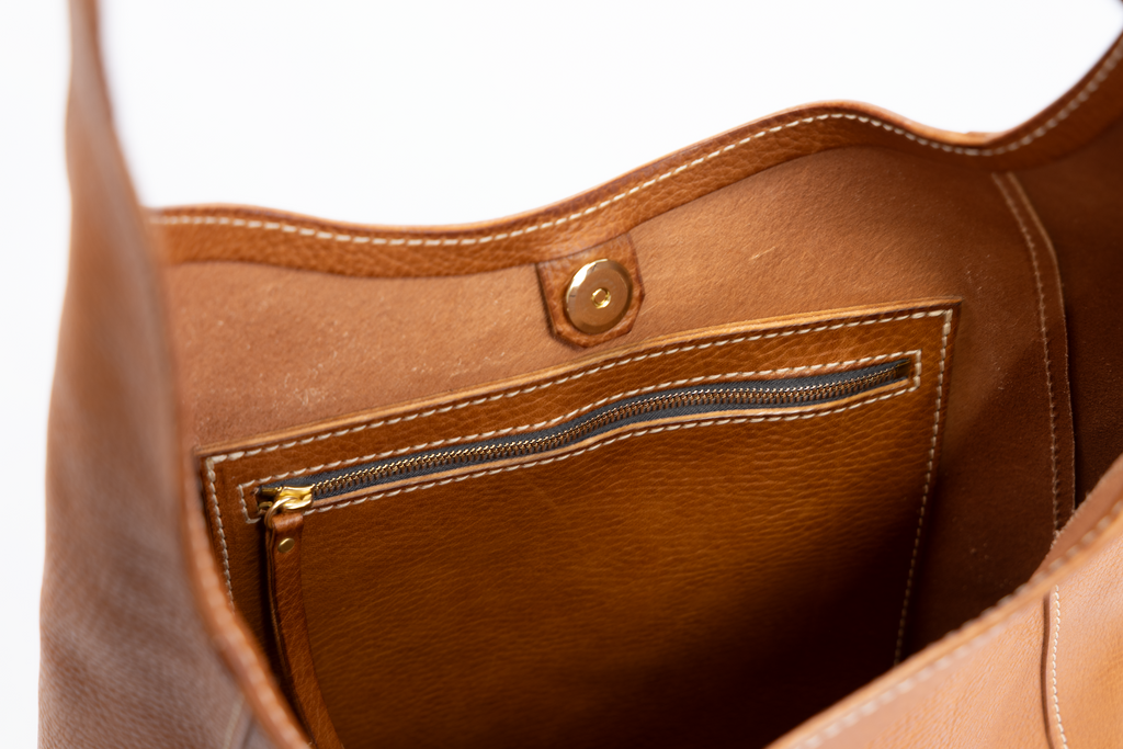 All our bags are made with American sourced fully vegetable tanned leather. When exposed to sunlight, oils and water, the leather will grow darker over time and develop a lovely dark patina. This patina is natural and is what gives this type of leather its coveted color.