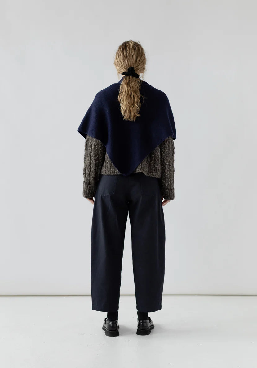 Beautiful color (Blue), rich fabric, understated minimal, functional and sleek, warm, and soft! A perfect wardrobe addition. 🖤