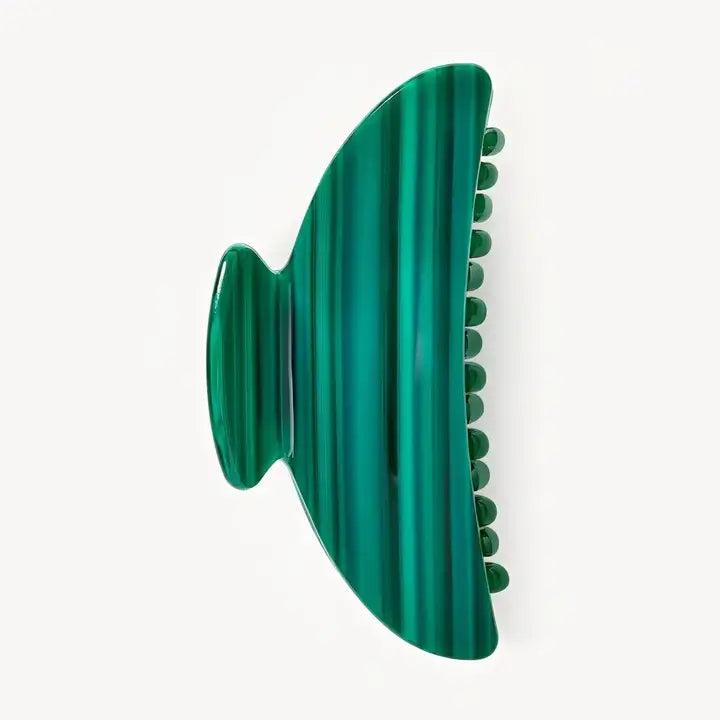 A double-walled hair claw designed to hold medium volumes of hair, handcrafted from Italian acetate with reinforced hardware. Recommended for all hair types and textures.